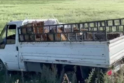 Ardahan’da arı kovanı taşıyan kamyonet Yalnızçam köyü yolunda devrildi.
