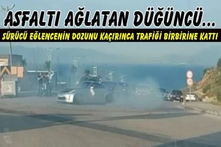 Olay, Mudanya ilçesi Yıldıztepe Mahallesi’nde meydana geldi. Edinilen bilgiye göre, düğün konvoyunda bulunan spor otomobil, trafiğin ortasında diğer araçlara aldırış etmeden drift yaptı. Onlarca aracın beklemesine aldırış etmeden asfaltta dumanlar çıkararak dönmeye tehlikeli hareketler yapmaya başladı. Pişkin sürücü trafiği tehlikeye atarken diğer sürücüler panik dolu anlar yaşadı. Trafiği durduran sürücünün o anları cep telefonu kamerasıyla kaydedildi.