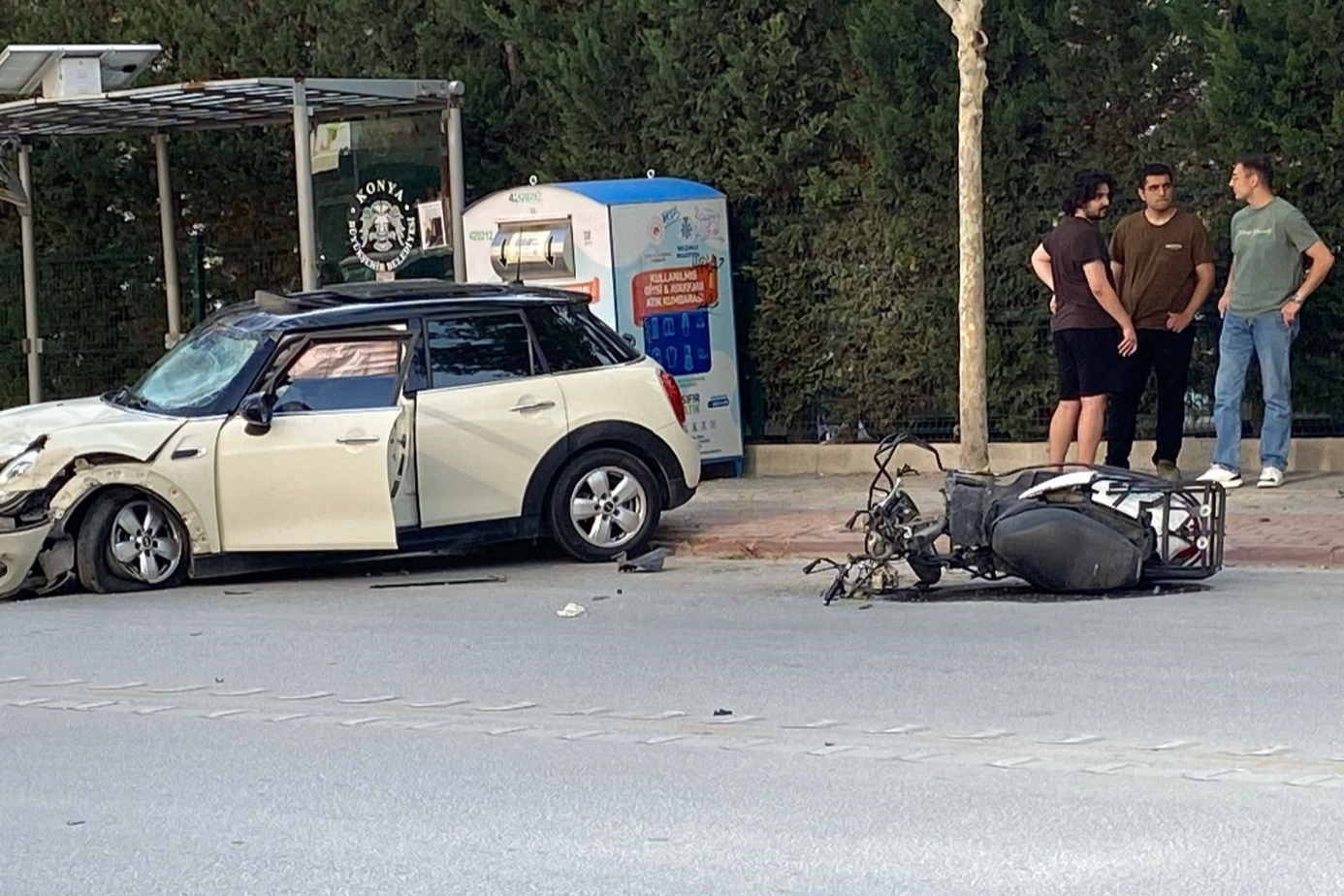 Konya'da kavşağa aşırı hızlı giren otomobil karşı şeride geçerek motosiklete çarptı.