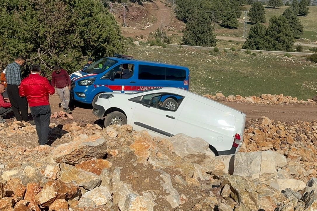 Olay, ilçe merkezine yaklaşık 50 kilometre mesafedeki Sorgun Mahallesi’nde bir mermer ocağı yolunda yaşandı. Alınan bilgiye göre Zeynep A. yönetimindeki 33 VPC 39 plakalı hafif ticari araç freni tutmayınca yokuş aşağı geriye doğru kaçtı. Yoldan çıkan araç 3 yolun kesiştiği kayalıkta şarampole devrilmeden askıda kaldı. Sürücü kendi imkanıyla dışarı çıkarken engelli eşi ise mahsur kaldı.