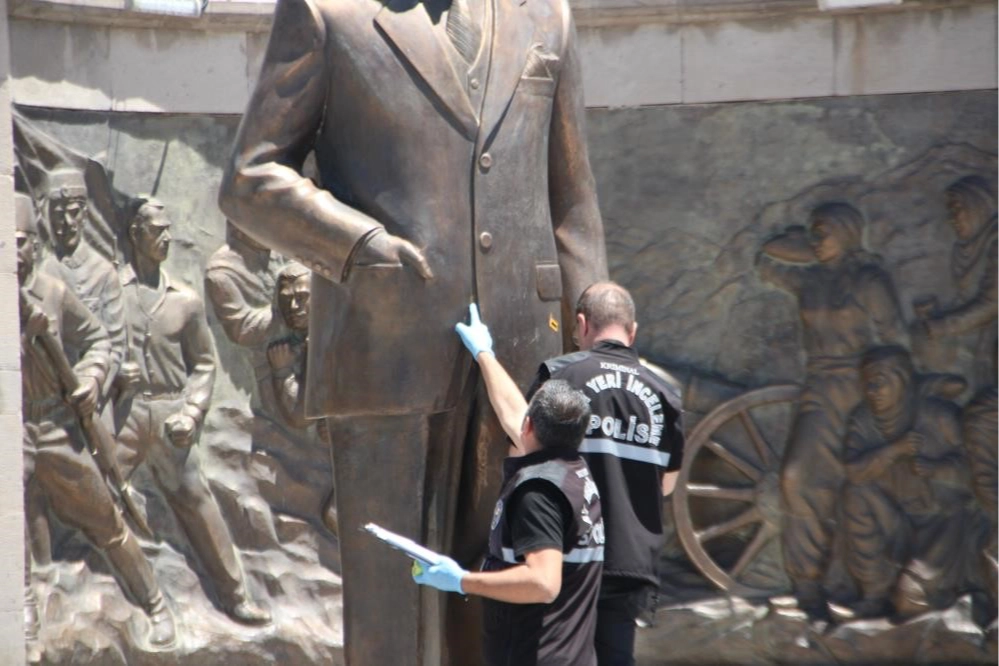 Geçtiğimiz 16 Haziran'da meydana gelen olayda; Y.K. ve yeğeni Z.A., Cumhuriyet Meydanı'ndaki Atatürk Anıtı'na balta ile vurarak zarar verdi. İhbar üzerine olay yerine gelen polis ekipleri, sanıkları yakalayarak gözaltına aldı. Gözaltına alınan iki şüpheli, tutuklanarak cezaevine gönderildi.