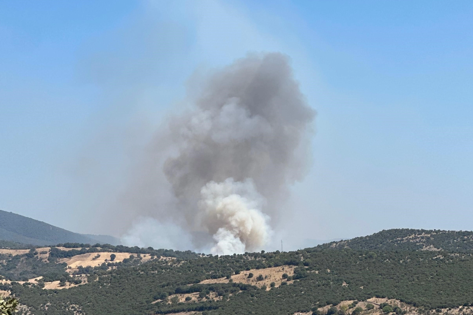 Balıkesir'in Kepsut ilçesinde tarlada başlayan yangın, ormanlık alana sirayet etti.