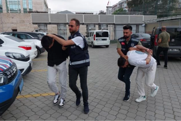Samsun'da barın kurşunlanmasına ilişkin olayda silahla yakalanan ve evlerinde yapılan aramada uyuşturucu ele geçirilen 3 kişi adliyeye sevk edildi. Edinilen bilgiye göre, Atakum ilçesi Körfez Mahallesi’nde bulunan bir bara önceki gece silahlı saldırı düzenlendi. Kimliği belirsiz saldırganlar kaçarken, Samsun Emniyet Müdürlüğü Asayiş Şube Müdürlüğü Cinayet Büro Amirliği ekipleri olayla bar çalışanı E.U. (26), A.Ö. (24) ve Y.E.Ö.'yü 2 adet tabancayla yakalayarak gözaltına aldı. Şahısların evlerinde yapılan aramalarda 2 kilo 160 gram skunk ele geçirildi. Polisteki sorguları tamamlanan 3 kişi, bugün Samsun Adliyesine sevk edildi.