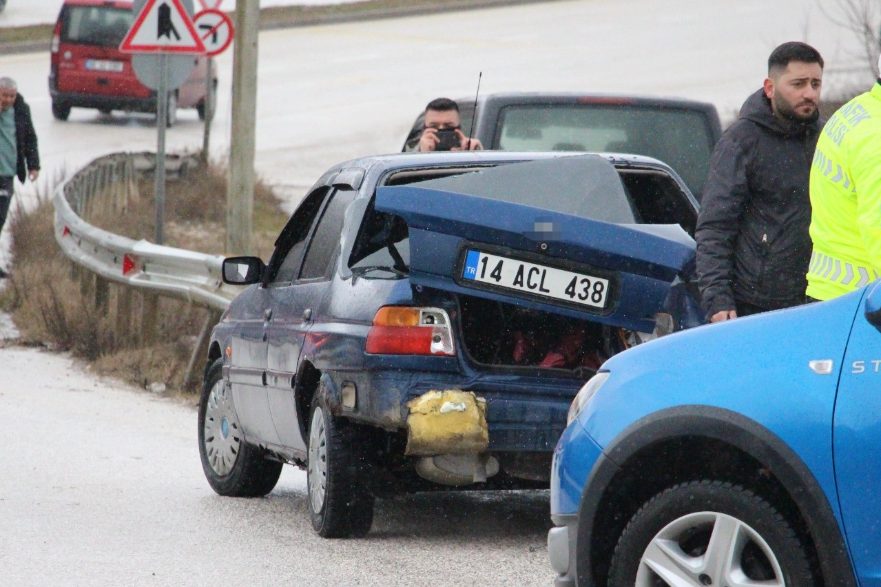4 aracın karıştığı kazada maddi hasar meydana geldi. Kaza, Abant İzzet Baysal Üniversitesi yolunda meydana geldi. Edinilen bilgiye göre, üniversite rampasından inen Ertan K. yönetimindeki 16 AFK 505 plakalı otomobil, sürücüsünün direksiyon hakimiyetini kaybetmesiyle kontrolden çıkarak bariyerlere çarptı. Kazayı gören İsa K., yardım etmek için 14 ADB 198 plakalı cipini yol kenarına park etti. Ancak bu sırada Cihat K. yönetimindeki 14 AB 852 plakalı otomobil, duramayıp cipe arkadan çarptı. Arkadan gelen Enis B. idaresindeki 14 ACL 438 plakalı otomobilde kazaya karışarak bariyerlere vurdu.