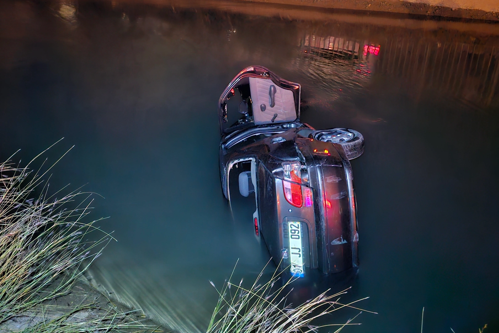 Adana'da kontrolden çıkan Fiat marka otomobil sulama kanalına düştü.