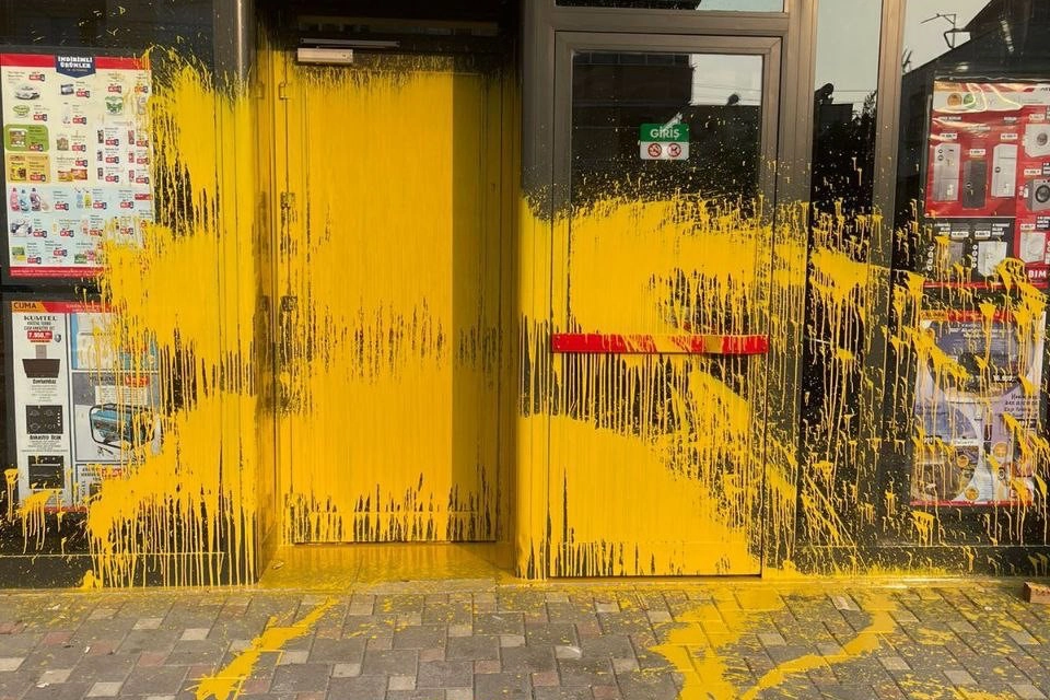 Sabah saatlerinde iş yerini açmak için markete gelen çalışanlar ise karşılaştıkları durum nedeniyle konuyu polis ekiplerine bildirdi. Market çalışanları, yağlı boyayla kaplanan camları temizledi.