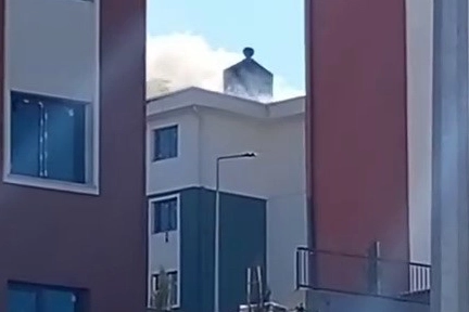 Adıyaman’da, yapımı yeni tamamlanan bir binanın tepesinde çıkan yangın korkuttu.