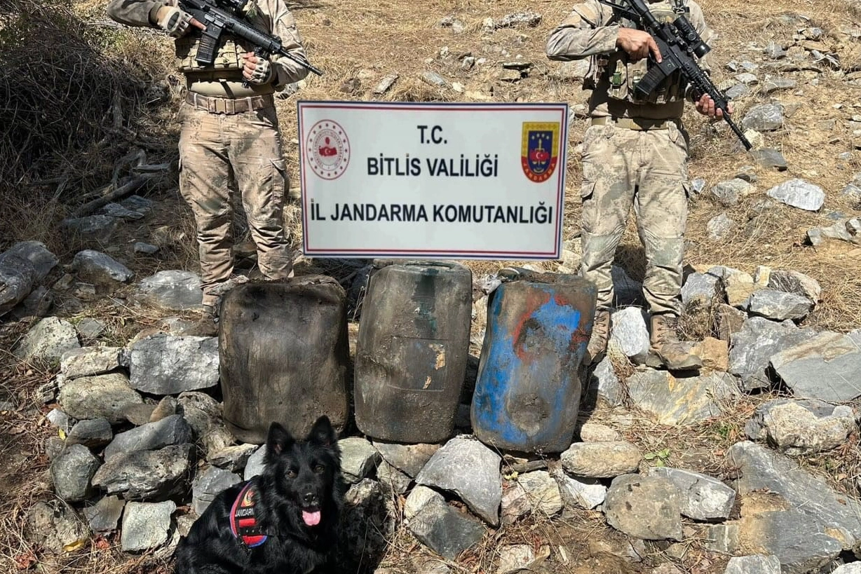 Bitlis’te jandarma ekiplerince yürütülen operasyonda 3 adet jelikan bidon içerisinde patlayıcı madde düzeneği yapımında kullanılan, amonyum nitrat karışımı olduğu değerlendirilen yaklaşık 300 litre sıvı madde ele geçirildi.