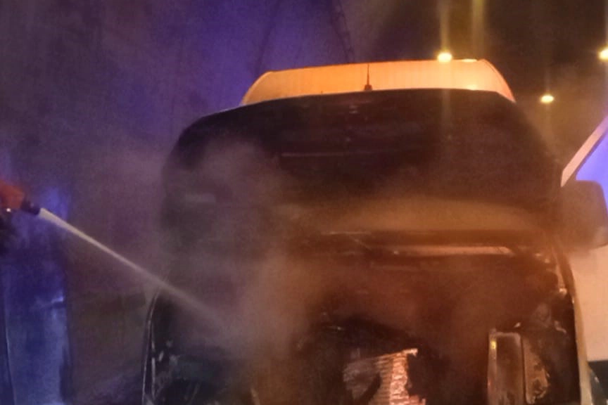 Bolu Dağı Tüneli'nde seyir halinde olan minibüsün motorundan yangın çıktı.