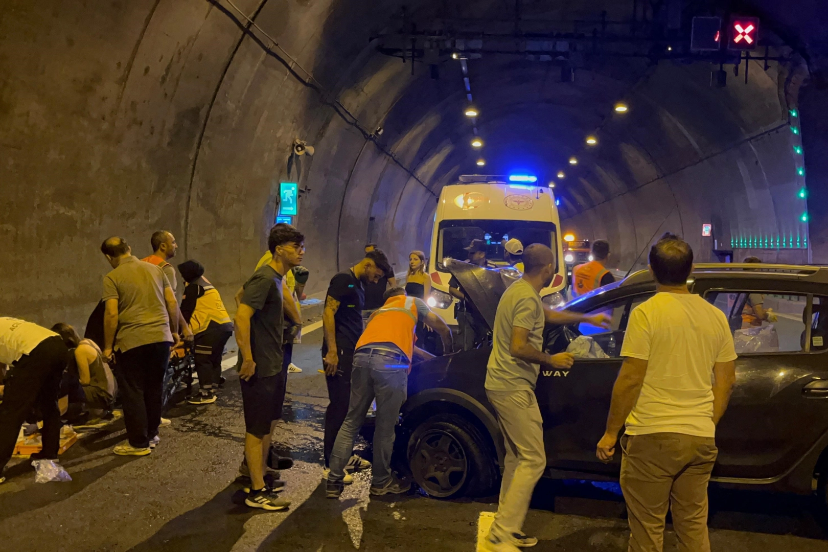TEM Otoyolu'nun Bolu Dağı Tüneli geçişinde kontrolden çıkan otomobil, tünel içindeki acil çıkış kapısına çarptı. Kaza nedeniyle yol kısa süreliğine trafiğe kapatılırken, aynı aileden 3 kişi yaralandı. Kaza sonrasında aracı kullanan yaralı baba gözyaşlarına hakim olamadı.