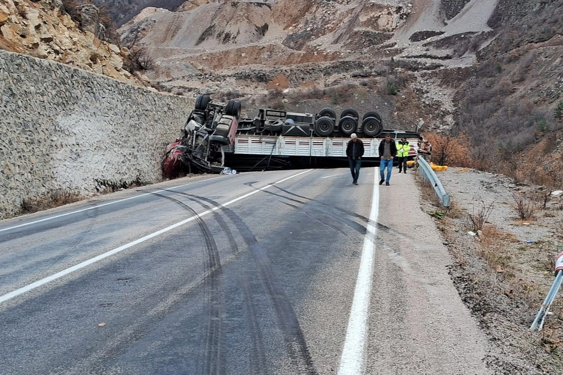 Kaza nedeniyle devrilen tır karayolunu ulaşıma kapatırken ağır yaralanan sürücü Özdemir, 112 Acil Sağlık ekiplerinin olay yerindeki ilk müdahalesinin ardından Gümüşhane Devlet Hastanesi yoğun bakım servisinde tedavi altına alındı.