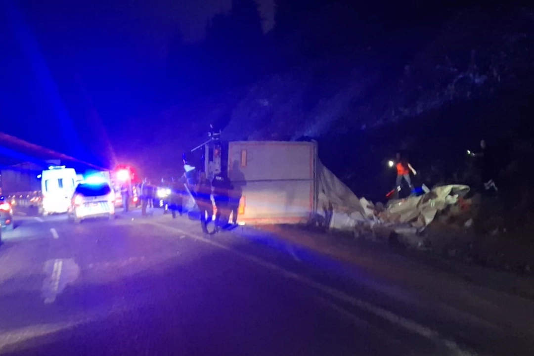 Bilecik'in Bozüyük İlçesi'nde beyaz eşya yüklü çekicinin devrilmesi sonucunda meydana gelen trafik kazasında 1 kişi öldü, 1 kişi yaralandı.