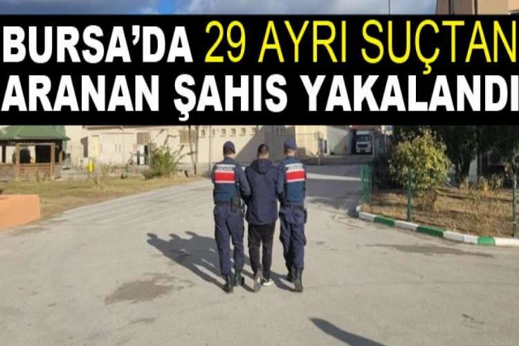 Bursa İl Jandarma Komutanlığına bağlı Yıldırım İlçe Jandarma Suç Araştırma Timleri tarafından yapılan çalışmalar sonucu, 29 ayrı suçtan kaydı ve 13 yıl 3 ay kesinleşmiş hapis cezası bulunan M.A. yakalanarak gözaltına alındı. "Bina içerisinde muhafaza altına alınmış eşya hakkında hırsızlık" suçundan hakkında 13 yıl 3 ay kesinleşmiş hapis cezası bulunan M.A., karakoldaki işlemlerinin ardından cezaevine gönderildi.