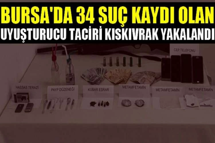 Gemlik Cumhuriyet Başsavcılığı talimatıyla, Kumla Jandarma Karakol Komutanlığı ekipleri tarafından yapılan çalışmada, Gemlik’in Kumla Mahallesinde ikamet eden C.A.'nın (42) adresine yapılan baskında, çeşitli gramajlarda satışa hazır metanfetamin tabir edilen uyuşturucu madde, kubar esrar tabir edilen uyuşturucu, uyuşturucu kullanımında yer alan ekipmanlar, hassas terazi, av tüfeği, 4 adet cep telefonu ve 12 bin 190 TL para ele geçirildi. Zanlının 34 adet suç kaydı olduğu ortaya çıktı Zanlı, işlemlerinin ardından adliyesine sevk edilerek hakim karşısına çıkarıldı. Daha önce de 34 suç kaydı olduğu öğrenilen zanlı, uyuşturucu imalat ve ticareti suçundan tutuklanarak cezaevine gönderildi.