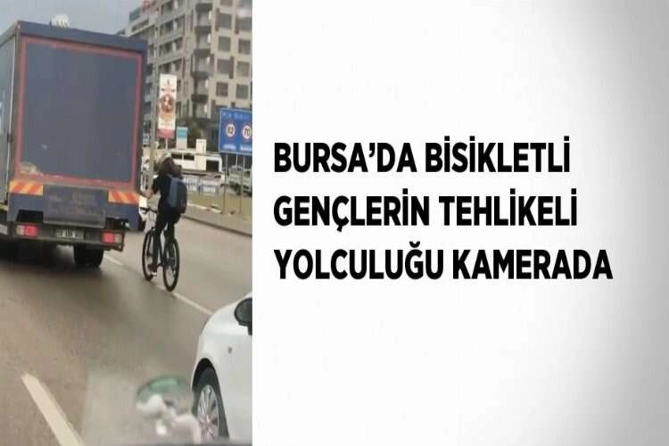 Bursa’da bisikletli gençlerin canlarını hiçe saydıkları tehlikeli yolculuk cep telefonu kamerasına yansıdı.