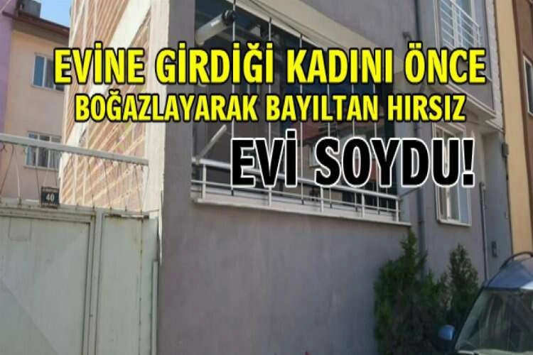 Olay, gece saatlerinde Mesudiye Mahallesi Şehit Er Şenol Çakır sokakta bulunan 3 katlı binanın zemin katında meydana geldi. İddiaya göre hırsızlık şüphelisi, yalnız yaşayan Müzeyyen Aslan'ın (56) dairesine pencereden girdi. Mutfakta yatan kadını, boğazlayarak bayıltan hırsız, evi didik didik aradı. Kadının, cüzdanındaki emekli maaşından kalan 2 bin 200 lira ile telefonu ve kartlarını alıp kaçtı. Sabah saat 08.00 sıralarında kendine gelen kadın, üst komşularına giderek yardım istedi. Komşuları durumu polise bildirdi. Boğazından yaralanan kadın, olay yerine sevk edilen Ambulansla İnegöl Devlet Hastanesine kaldırıldı. Sağlık durumunun iyi olduğu öğrenildi. Kadın tedavinin ardından polis karakoluna giderek şikayetçi oldu. Olayı anlatan mağdur Müzeyyen Aslan(56), "Gece saat 01.00 de yattım. Mutfakta uyuyakalmışım. Mutfağın camı açık kalmış. Bir ara bir ses geldi kulağıma. Kalkıp oturdum. Hırsızla göz göze geldim. Sakallı, beyaz şapkalı, maskeli biriydi. Üzerime gelip boğazıma yapıştı. Kanepe üzerine düşmüşüm. Kendime geldiğimde sabah olmuştu. Emekli maaşımdan kalan 2 bin 200 TL ile telefonumu çalmış. Bizi mi buluyor bunlar ya" dedi. Polis olayı gerçekleştiren şüpheliyi arıyor.