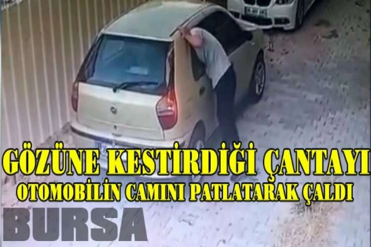 Olay, merkez Osmangazi ilçesinde meydana geldi. Edinilen bilgiye göre, şüpheli bir şahıs, otomobilde bulunan çantayı gözüne kestirdi. Bir süre uygun zamanı bekleyen şüpheli, otomobilin bir anda camı kırıp çantayı çalarak gözden kayboldu. Hırsızlık anı ise anbean kameralara yansıdı.