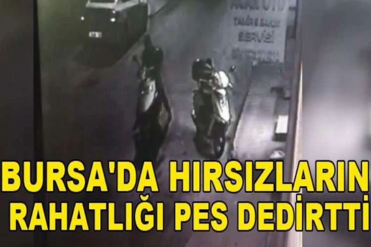 Olay, merkez Osmangazi ilçesi 3. Gönül Sokak'ta meydana geldi. Edinilen bilgiye göre, hırsızlardan yaka silken esnaf, ne yapacağını şaşırdı. Kapılara üst üste kilit yapan, güvenlik kamerası takan esnaf, hırsızlıkların önüne geçemiyor. Son yaşanan olaylardaki hırsızların rahatlığı ise pes dedirtti. İlk görüntülerde, 2 genç dükkanın önündeki motorun yanına gelip anahtarının nerede olabileceğini kontrol ediyor. Dükkanda günün hesabını yapan kişileri umursamayan hırsızlardan erkek olanı motosiklete oturduktan sonra ayaklarıyla iterek çalıyor. Hesabı kapatıp dışarı çıkan esnaf, motoru göremeyince şaşkına dönüyor. Motorun kaşla göz arasında çalındığını ifade eden Hüseyin Beyazova, "İş yerinde hesap kitap görürken, motoru alıp kaçmışlar. Kim olduğu belli değil. Bıktık biz bu hırsızlardan mazgallarımız çalındı, arkadaşımızın kepenkleri çalındı. Burada her akşam bir olayla karşılaşıyoruz" dedi. Taksi ile kaçan sosyete hırsız Diğer görüntülerde ise, 2 kişi daha önceden keşfini yaptıkları yere, gece bir kez daha geliyor. Çevrede oturan vatandaşların olmamasından faydalanan hırsızlar, üst üste kilitli olan kapıyı kırarak içeri giriyor. Çaldıkları ürünleri dışarı çıkaran zanlılar, yoldan çevirdikleri taksiye binerek kayıplara karışıyor. Sabah dükkanın kapısını açık gören işletme sahibi, içeriye girdiğinde ise 30 bin liralık malzemesinin olmadığını tespit etti. Nurettin Demir, “Hırsızlar gece saatlerinde buraya geliyor. Burada bulunan dükkanımın kapı kilidini kırıp malzemelerimin hepsini alıyor. Gece saatlerinde gelen hırsızlar, daha sonra ticarî plakalı bir araca malzemelerimi yükleyip kaçıyor. Ertesi gün geldiğimizde kapının kilidinin kırık olduğunu gördük. Polis ekiplerini çağırdık. Gelen polisler, rapor tuttur. Bu hırsızlar artık araba kiralamıyor, taksi tutuyor. Bunlar sanıyorum ki lüks hırsızlar. Bizim malzemelerimizi satıp, parayı buluyorlar” dedi. Boyahane ustası Emin Kaya ise, "Hırsızlar buraya çok fazla dadandı. Korkuluklarımı söküp çaldılar, daha önce de alt komşumuzun dükkanını soymuşlardı. Bir an önce çare bulunmasını istiyoruz" diye konuştu.
