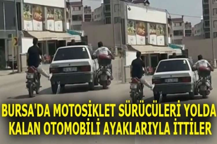Olay, merkez Osmangazi ilçesi Demirtaş Mahallesi'nde meydana geldi. Edinilen bilgiye göre, bir otomobil henüz öğrenilemeyen bir sebeple yolda kaldı. Tesadüfen yoldan geçen 2 motosiklet sürücüsü ise otomobili el ve ayaklarıyla iterek tamirhaneye götürdüler. O ilginç anlar arkadan gelen başka bir otomobil sürücüsü tarafından kaydedildi.
