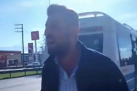 Minibüs şoförlüğü yapan Remzi Alan, arkadan çarptığı otomobilin hamile sürücüsü ile trafikte tartıştı.