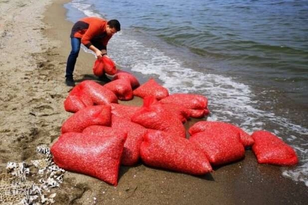 Eğerce ve Ayazma plajlarındaki kontrollerde, 20 çuvalın içinde, avlanması yasak olan yaklaşık 700 kilogram kum şırlanı ele geçirildi.