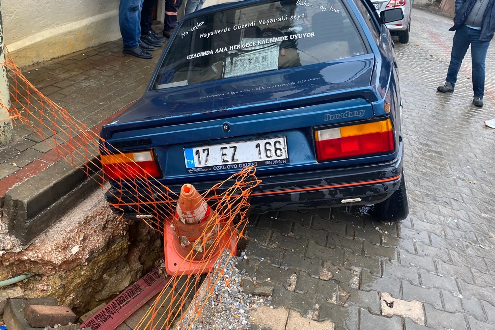 Çanakkale'nin Biga ilçesinde gece boyunca devam eden yağış nedeniyle altyapı çalışması yapılan yol çöktü. 2 otomobil de göçüğün içine düştü.