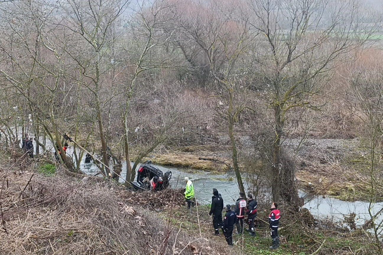 Çanakkale'nin Çan ilçesinde meydana gelen trafik kazasında bir otomobil Kocabaş Çayı'na uçtu.