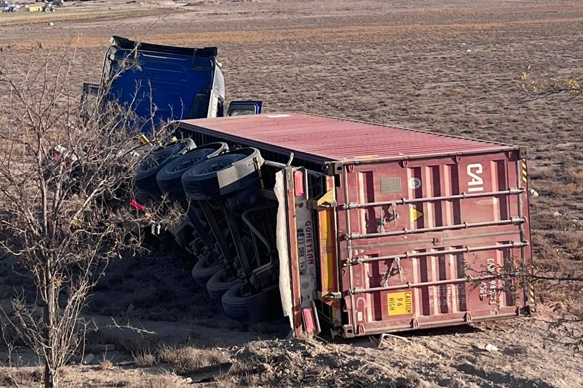 Konya’nın Karapınar ilçesinde kontrolünden çıkan çekicinin devrilmesi sonucu sürücü yaralandı.