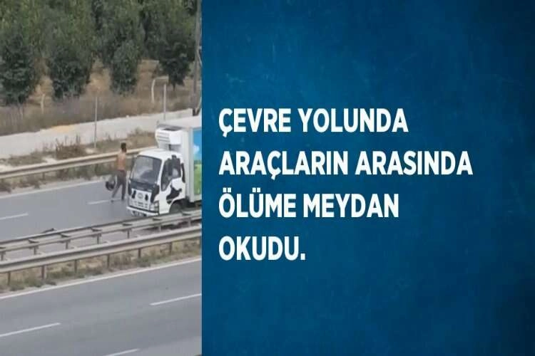 Bursa’da bir şahıs, çevre yolunda hızla gelen araçların arasında yürüyerek tehlike saçtı.