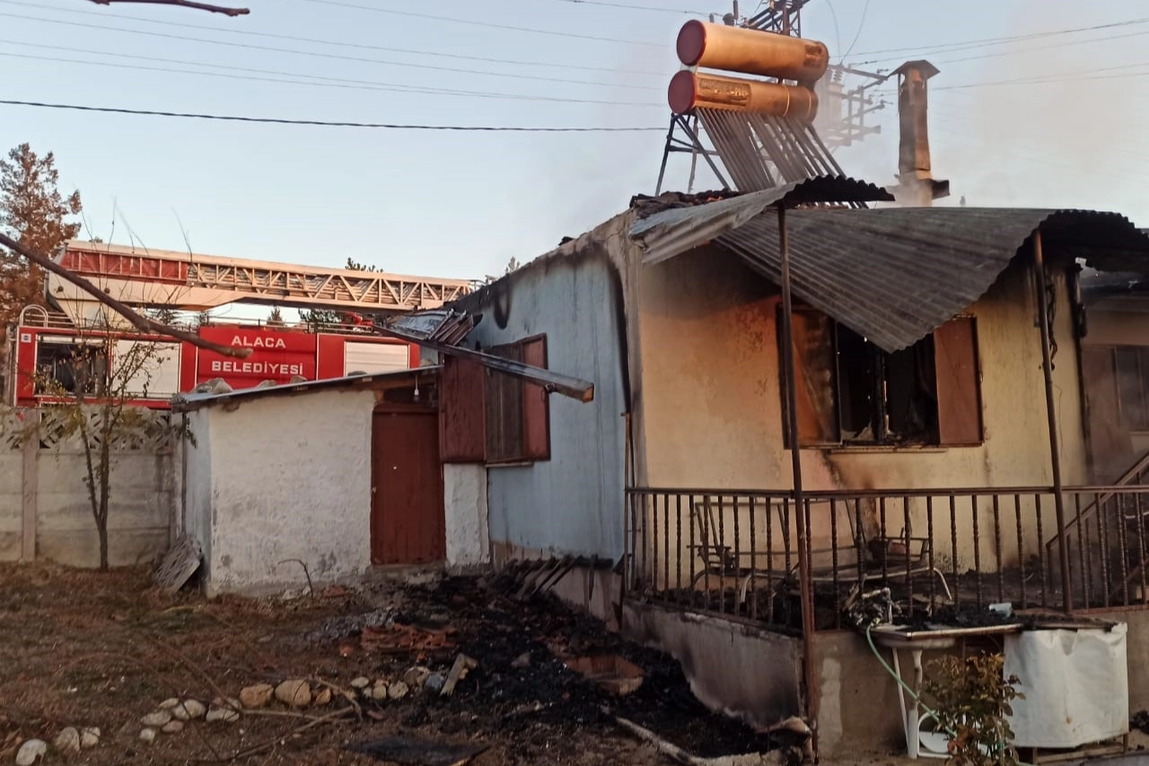 Çorum’un Alaca ilçesine çıkan yangında ahşap ev kullanılamaz hale gelirken, 1 kişi yaralandı.
