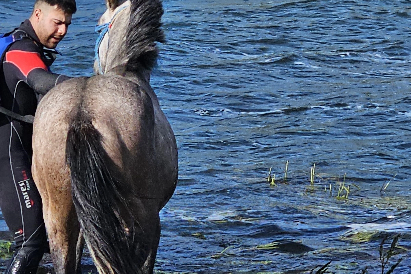 Ardahan Çıldır Gölü'ndeki adacıkta mahsur kalan at, AFAD ekiplerinin yardımıyla kurtarıldı.
