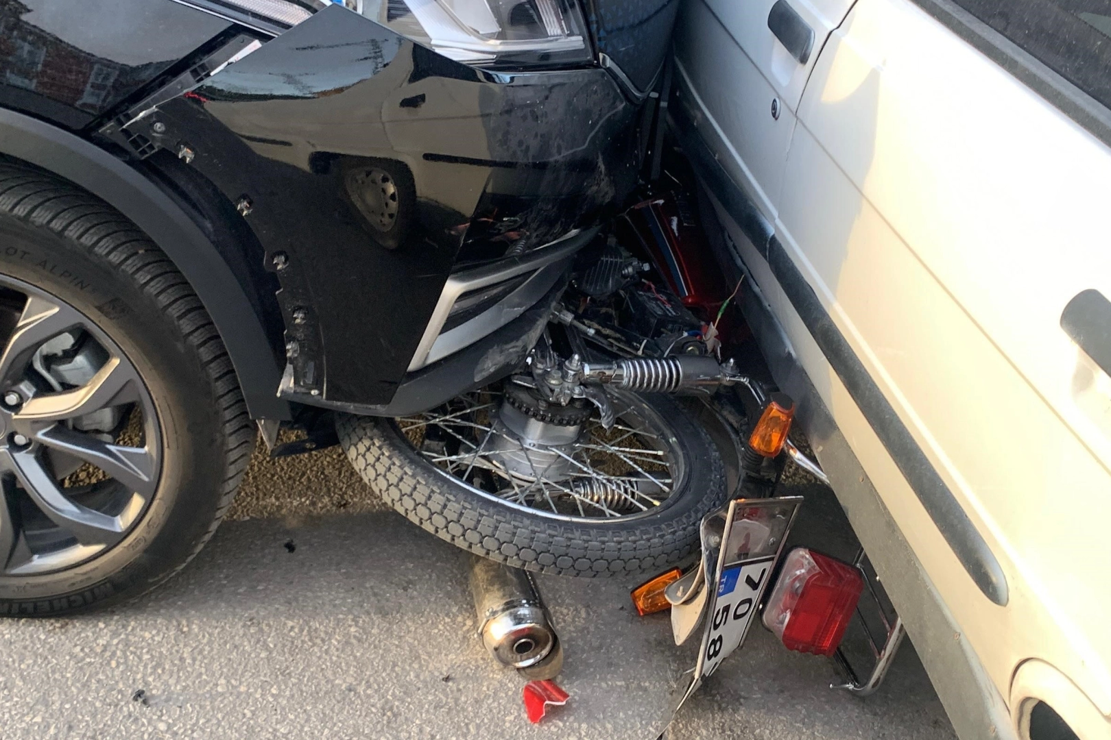 Kaza sırasında motosikletinden atlayan sürücü canını son anda kurtarırken motor cipin altında kaldı. Altına aldığı motosikleti sürükleyen cip, daha sonra kavşakta dönüş yapmak için bekleyen A.E. idaresindeki 07 GVZ 22 plakalı otomobile çarparak durabildi. İki aracın arasında kalan motosiklet ise kullanılamaz hale geldi. İhbar üzerine olay yerine sağlık ve polis ekipleri sevk edildi. Kazayı hafif sıyrıklarla atlatan motosiklet sürücüsü tedbir amaçlı ambulansla Karaman Eğitim ve Araştırma Hastanesi’ne kaldırıldı. Kazayla ilgili tahkikat başlatıldı.
