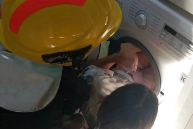 Kazakistan'ın Ridder kentinde evde tek başına kalan iki kız çocuğundan biri oyun oynarken çamaşır makinesinin tamburuna sıkıştı. Diğer çocuk, arkadaşının sıkışması üzerine acil yardım numarasını arayarak ekiplerden yardım istedi.