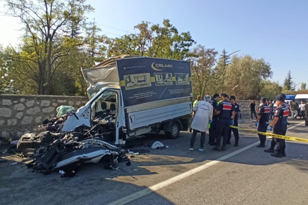 Çorum'da mobilya yüklü kamyonetin park halindeki tır dorsesine çarpması neticesinde meydana gelen trafik kazasında 3 kişi öldü.