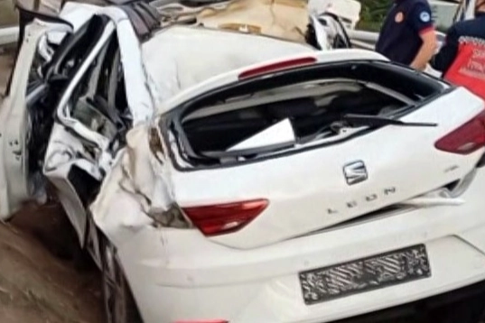 Kontrolden çıkan otomobil bariyerleri aşarak aydınlatma direğine çarptı. Araç adeta kağıt gibi ezilip parçalara ayrılırken, sürücü dışarı fırlayıp otomobilin altında kaldı. Feci kazada 1 kişi ağır yaralandı.