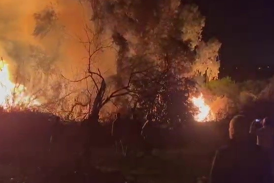 Antalya’nın Manavgat ilçesinde D-400 kara yolu üzerinde çıkan ve gökyüzünü aydınlatan yangın, korku dolu anların yaşanmasına neden oldu.