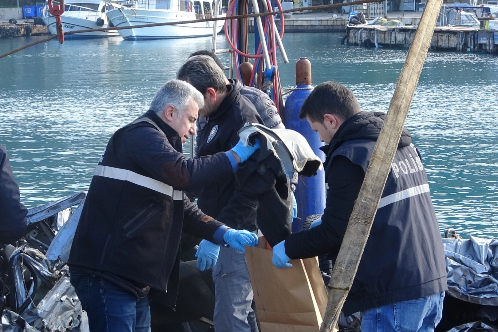 Deniz polisi tarafından yeri tespit edilen aracı bulunduğu yerden çıkarmak için ekipler hummalı bir çalışma içerisine girdi. Deniz Polisi'ne bağlı balıkadamlar tarafından aracın bulunduğu yer duba ile işaretlenirken ilk olarak araca halat bağladı. Ardından tekne üzerinde bulunan özel vinç yardımıyla araç bulunduğu yerden çıkarıldı. Aracı çıkarma çalışmalarını Engin Ş.'nin babası Hacı Veli Ş. de endişeli gözlerle izledi. Dalgıçların halatla bağladığı otomobil, vinç yardımıyla bulunduğu yerden tekneye çıkarılırken, Engin Ş.’ye ait araç içerisinde herhangi bir ize rastlanmaması üzerine İtfaiye ekipleri de halat yardımıyla falezlerden sarkarak kayalıklarda arama yaptı. Vinç aracılığıyla tekneye alınan otomobil, Antalya Yatlimanı'nda bulunan Antalya Emniyet Müdürlüğü Deniz Liman Şube Müdürlüğüne getirildi. Burada Olay Yeri İnceleme ekipleri tarafından araç üzerinde inceleme yapıldı. İncelemeler sırasında, ikiye bölünen ve hurda halindeki araç içerisinde bulunan ve Engin Ş.’ye ait olduğu değerlendirilen bir kıyafet delil torbasına konuldu.