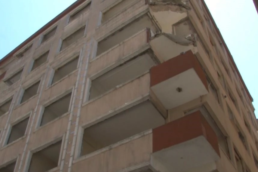 İstanbul Bahçelievler'de yıkım kararı olan 7 katlı bir binanın 2 balkonu deprem esnasında çöktü.