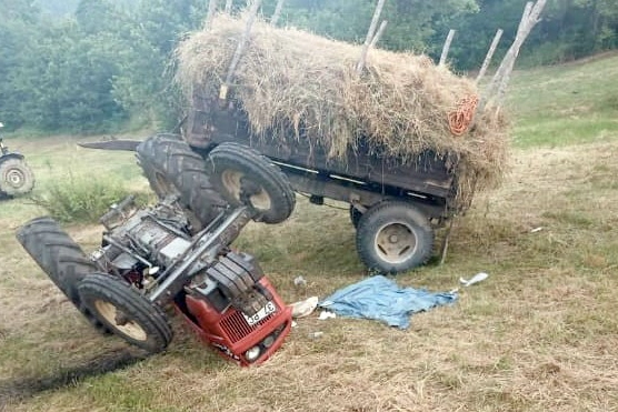 Kastamonu’nun Küre ilçesinde devrilen saman yüklü traktörün altında kalan sürücü ağır yaralandı.
