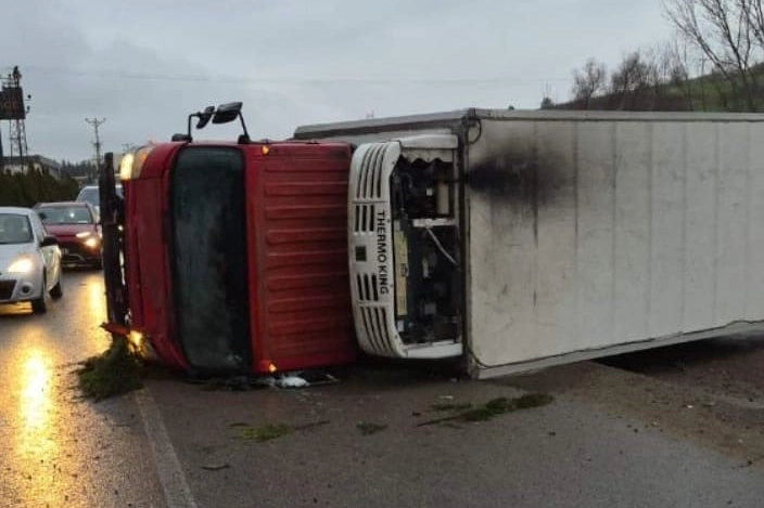 Kaza, Bursa-Ankara karayolu İnegöl girişinde meydana geldi. Edinilen bilgiye göre, Bursa'dan İnegöl istikametine seyir halinde olan Hasan Ş. (52) yönetimindeki 16 J 9995 plakalı kamyon, sürücüsünün direksiyon hakimiyetini kaybetmesi sonucu yol kenarında bulunan bir içecek fabrikasının duvarına çarptı. Çarpmanın etkisiyle kamyon devrildi. Kazada sürücü Hasan Ş. ile araçta yolcu olarak bulunan Mehmet A. (50) yaralandı. Yaralılar, olay yerine sevk edilen sağlık ekiplerinin ilk müdahalesinin ardından ambulansla İnegöl Devlet Hastanesi'ne kaldırıldı. Kaza sonrası bölge trafik eki