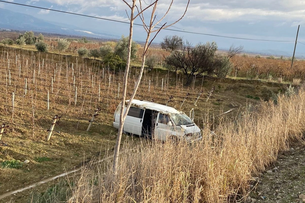 Denizli’nin Buldan ilçesinde sürücüsünün direksiyon hakimiyetini kaybetmesi sonucu kontrolden çıkan panelvan araç, yolun sağında bulunan üzüm bağlarına uçtu.