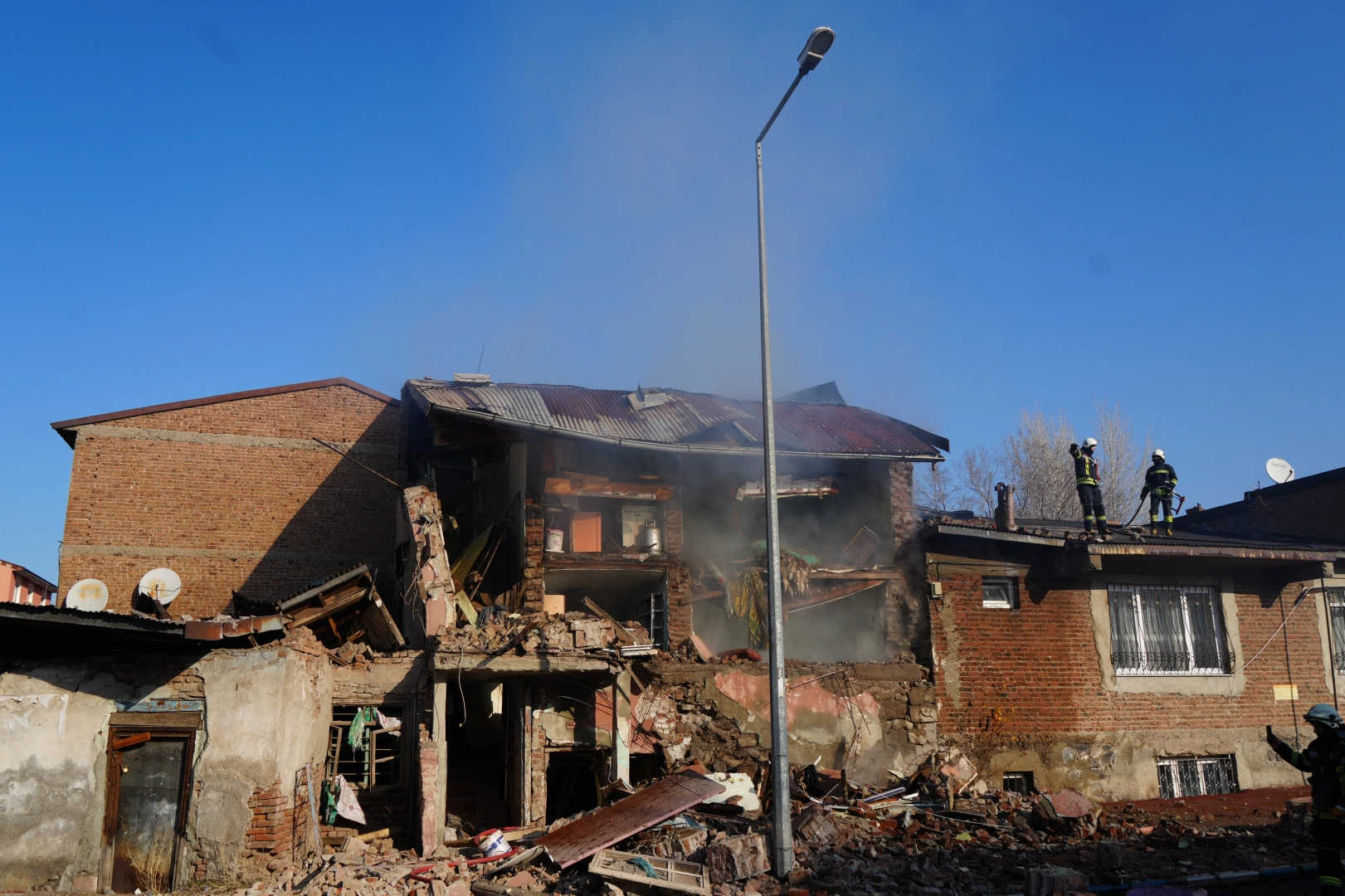 Erzurum'da doğalgaz patlaması sonucu 2 ev yıkıldı.