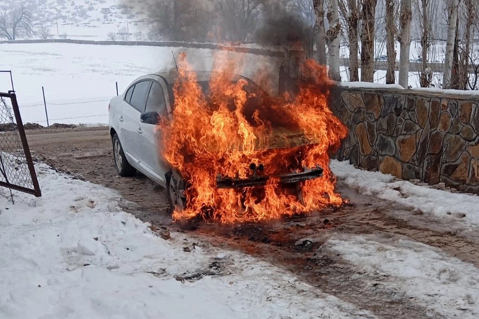 Bitlis'in Güroymak ilçesine bağlı Budaklı köyünde aşırı soğuklar nedeniyle otomobilinin donan yakıt deposunun ateşle ısıtmaya çalışan sürücü, aracın yanmasına neden oldu.