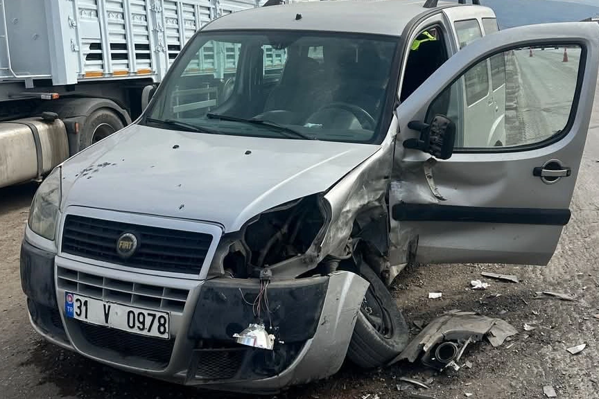 Hatay'ın Dörtyol ilçesinde otomobille çarpışan Fiat marka hafif ticari aracın sürücüsü hayatını kaybetti.