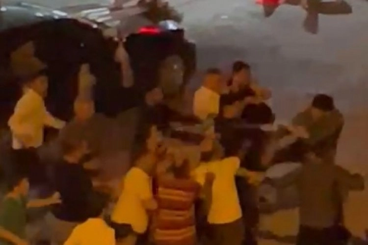 Karşılıklı atışmayla başlayan tartışma, kavgaya dönüştü. Salondan çıkan kalabalık grup, sokakta tekme tokat kavgaya devam etti.