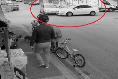 Güvenlik kamerasına saniye saniyesine yansıyan kazada şans eseri yaralanan olmazken, Mithatpaşa Caddesi üzerinde park halinde bulunan ve otomobil sürücüsünün trafik tabelasını görmesini engelleyen kamyonet, kazanın ardından olay yerinden uzaklaştı.