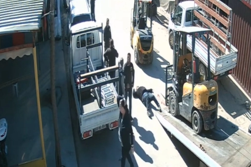 Edirne Sanayi Sitesi'nde forkliftlerin arasına giren bir işçinin feci şekilde can verdiği kaza saniye saniye kameralara yansıdı.