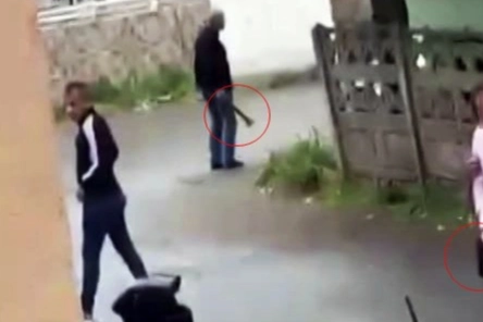 Tartışmanın ardından sokaktan ayrılan ve bir süre sonra tekrar balyoz ile evinin kapısına dayanan çocuğu gören emekli polis, silahı ile sokağa çıkınca panik yaşandı. O anlar cep telefonu kamerası ile görüntülendi.