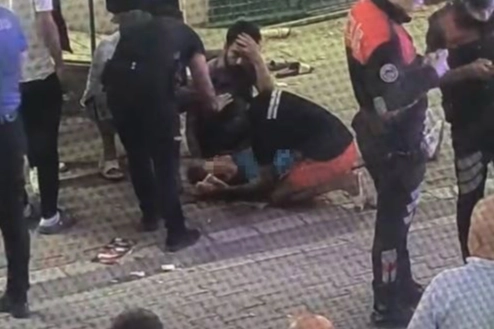 Kısa sürede hararetlenen tartışma sokağa taşarken, kadının eşi de olay yerine geldi. Taraflar tekme, tokat ve demir sopalarla birbirine saldırırken, eşini ayırmak isteyen kasiyer kadın, araya girdi. O sırada kafasına defalarca yumruk ve sopa darbesi yiyen kadın, bayılarak yere düştü. Çevredeki vatandaşların ihbarı üzerine olay yerine çok sayıda polis ekibi sevk edildi. Dakikalarca yerde hareketsiz şekilde yatan kadın sağlık ekiplerince hastaneye kaldırılırken, iki tarafta karakola giderek birbirlerinden şikayetçi oldu. Kadının aldığı darbeler sonucunda bayıldığı anlar ise saniye saniye kameraya yansıdı.