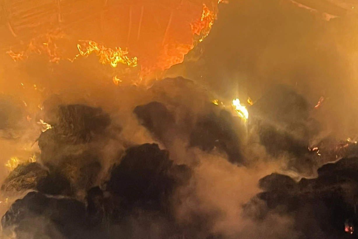 Eskişehir'in Alpu ilçesinde bir çitlikte gece çıkan yangında binlerce saman balyası ve yem kül olurken hayvanlar tahliye edildi.